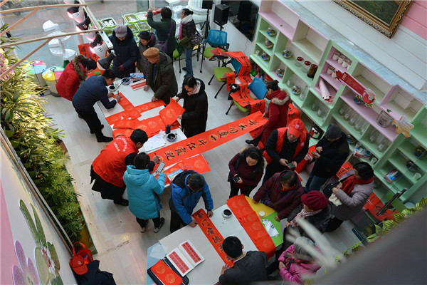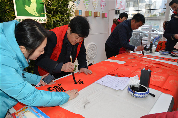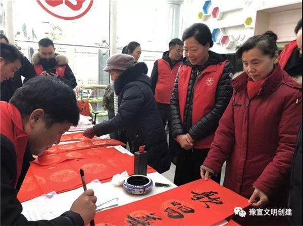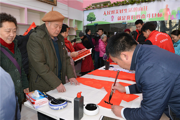 在“迎新春、送春聯(lián)”活動現(xiàn)場,書法家們揮毫潑墨,為廣大黨員群眾書寫春聯(lián),吸引了多名書法愛好者現(xiàn)場求教;黨員群眾們拿著剛寫好的還飄著墨香的春聯(lián),欣賞、贊嘆、感謝聲不絕于耳。