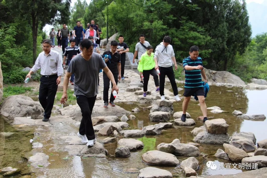 在下午攀登嵩山的過程中,大家伴著潺潺流水,聽著松濤陣陣,嗅著山林清香,相互鼓勵、相互扶持,人群中不時傳出悅耳的笑聲,在進行戶外鍛煉的同時也很好地放松了心情。這些別出心裁的活動都得到了青年干部熱情高漲的參與,也得到了大家的一致好評。